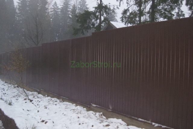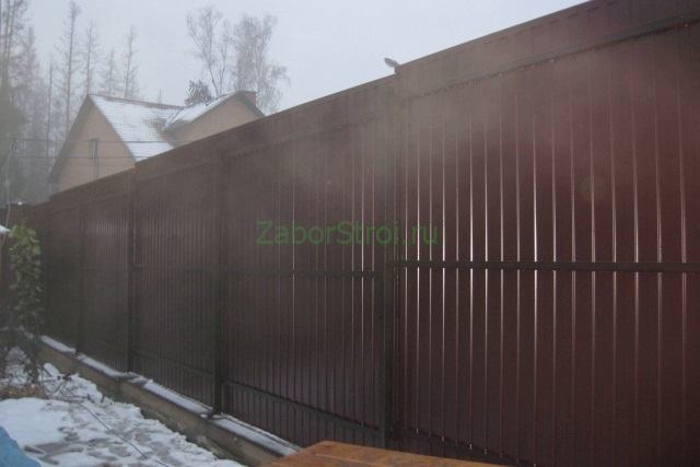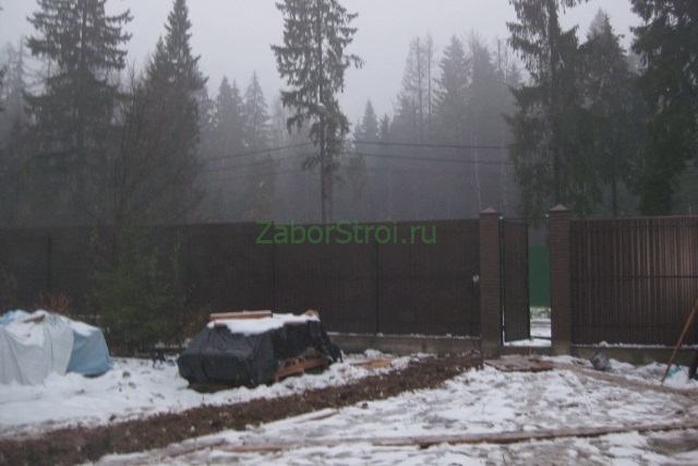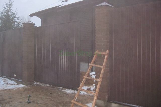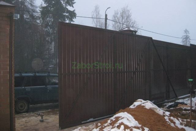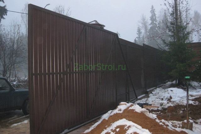 Откатные ворота из профнастила на винтовых сваях (цена на бетонном основании +20000р)